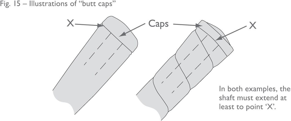 This provision is interpreted to mean that the shaft must extend to the end of the grip, or at least that the grip should not extend beyond the top end of the shaft more than is necessary to accommodate the butt cap (see Figure 15).