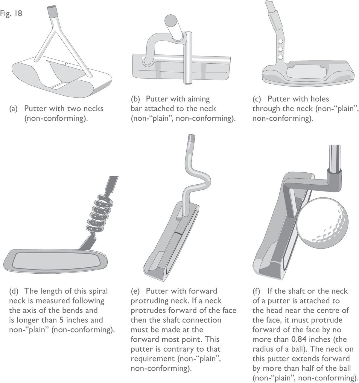 The most important points to remember here are that a club must only have one neck, that it must be “plain” and, in order to restrict elaborate shapes and curves, the length of the neck is limited to 5 inches (127 mm).