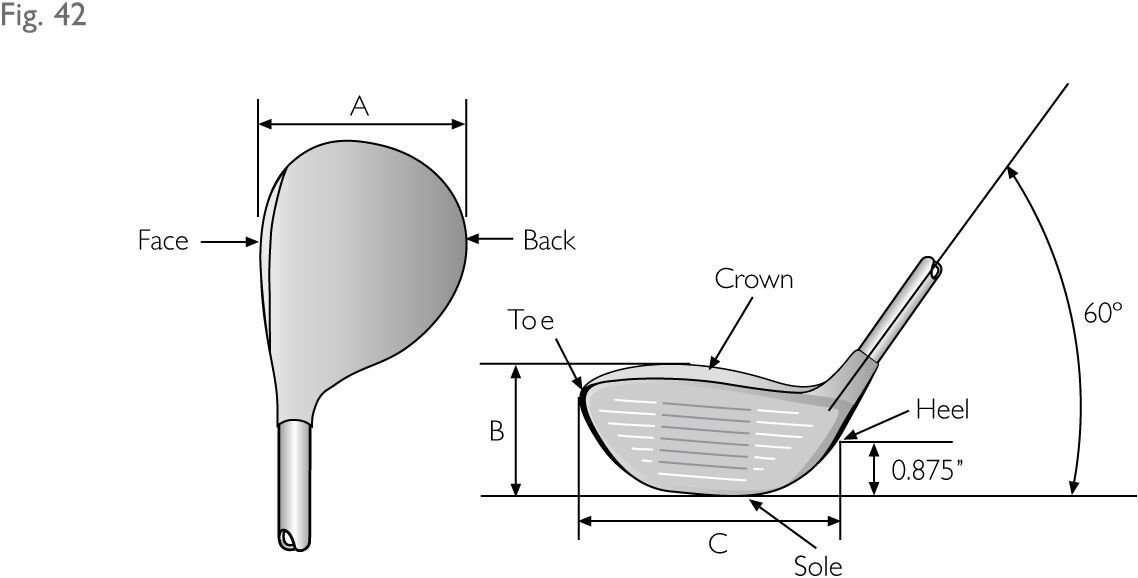 The volume of the clubhead must not exceed 460 cubic centimetres (28.06 cubic inches), plus a tolerance of 10 cubic centimetres (0.61 cubic inches).