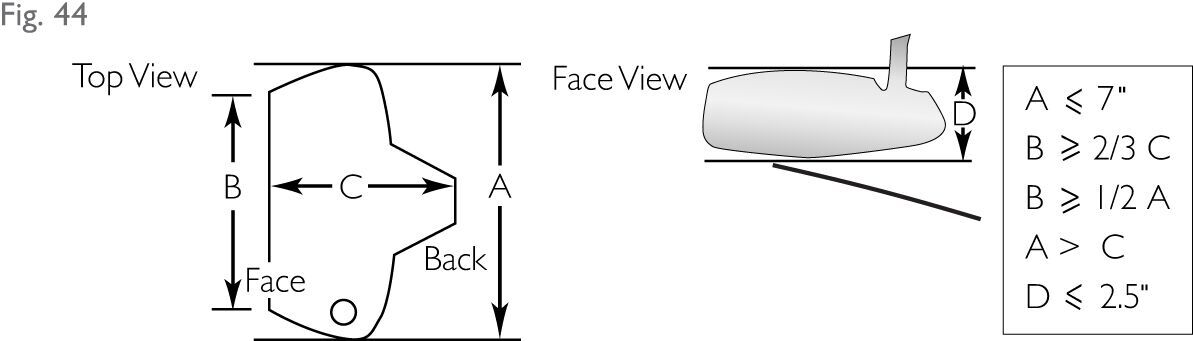 When the clubhead is in its normal address position, the dimensions of the head must be such that: