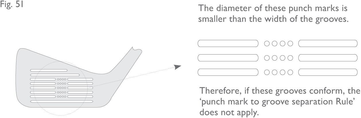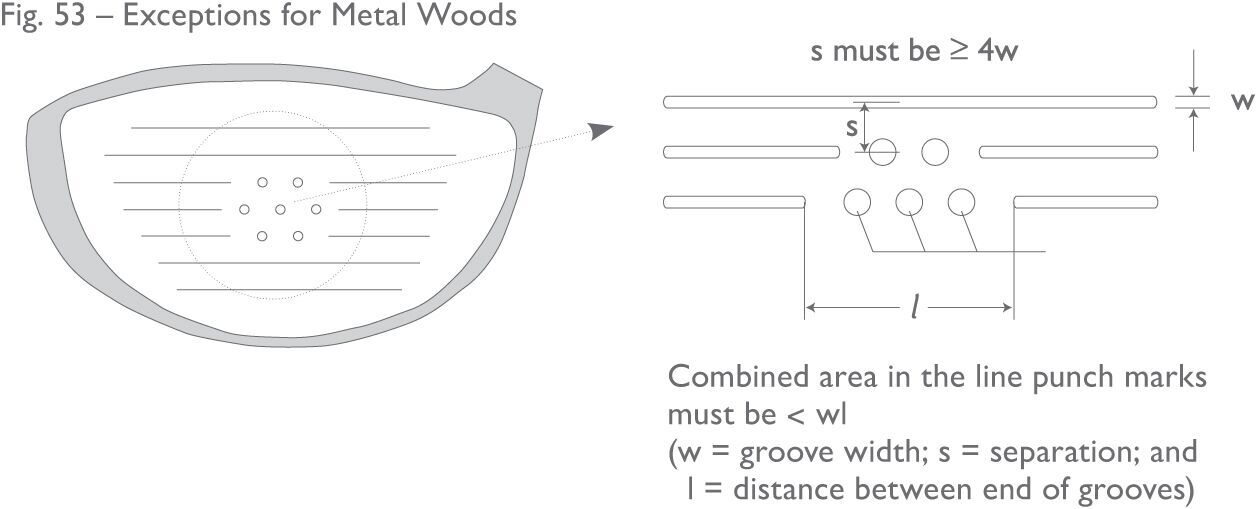 Provided the following three conditions are satisfied, the above interpretation of the specifications for punch marks in line with a groove may also be granted for metal woods, even if the punch marks would not be totally contained by the continuation of the groove: